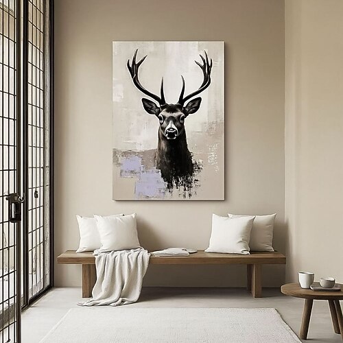 Handgemaltes abstraktes Hirsch-Ölgemälde, handgemaltes modernes Tierbild für die Wand, großes Leinwandbild für das Wohnzimmer, zeitgenössische, naturinspirierte Dekoration
