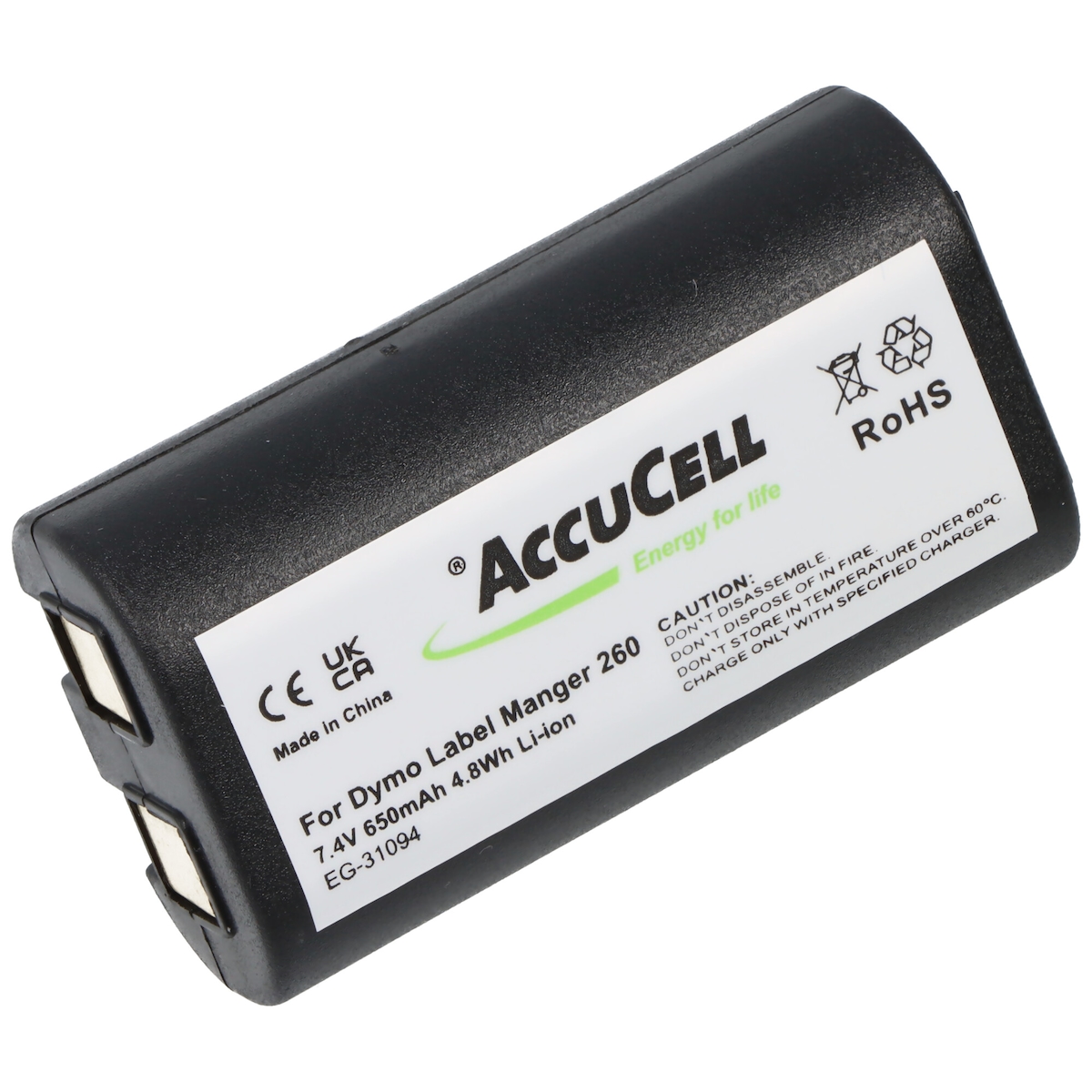 AccuCell Akku passend für Dymo LabelManger 260, Li-Ion, 7,4V, 650mAh, 4,8Wh