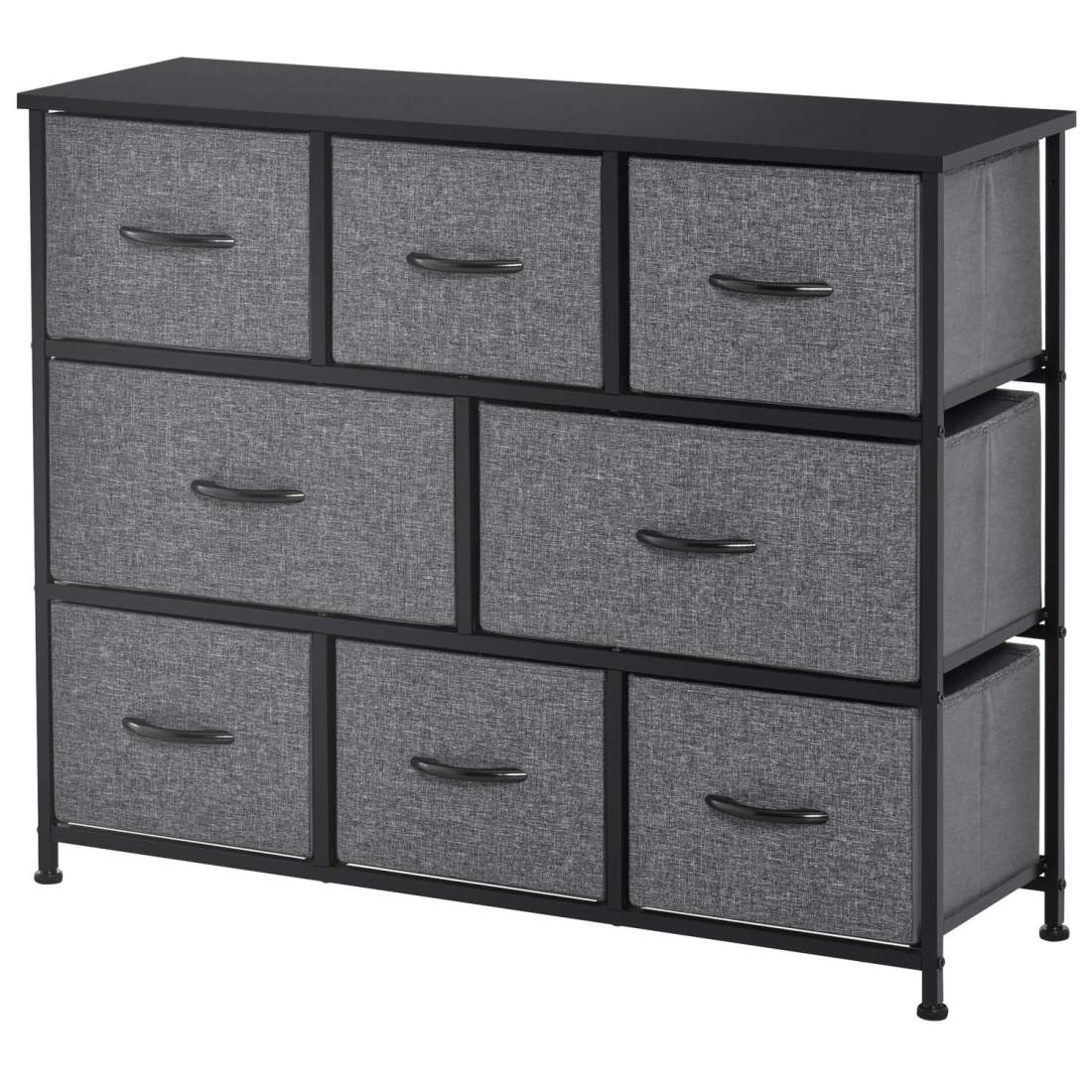 Kommode med 8 skuffer laget av stoff, oppbevaringsskap, kommode med håndtak, metallramme, moderne designskap for soverom, stue,