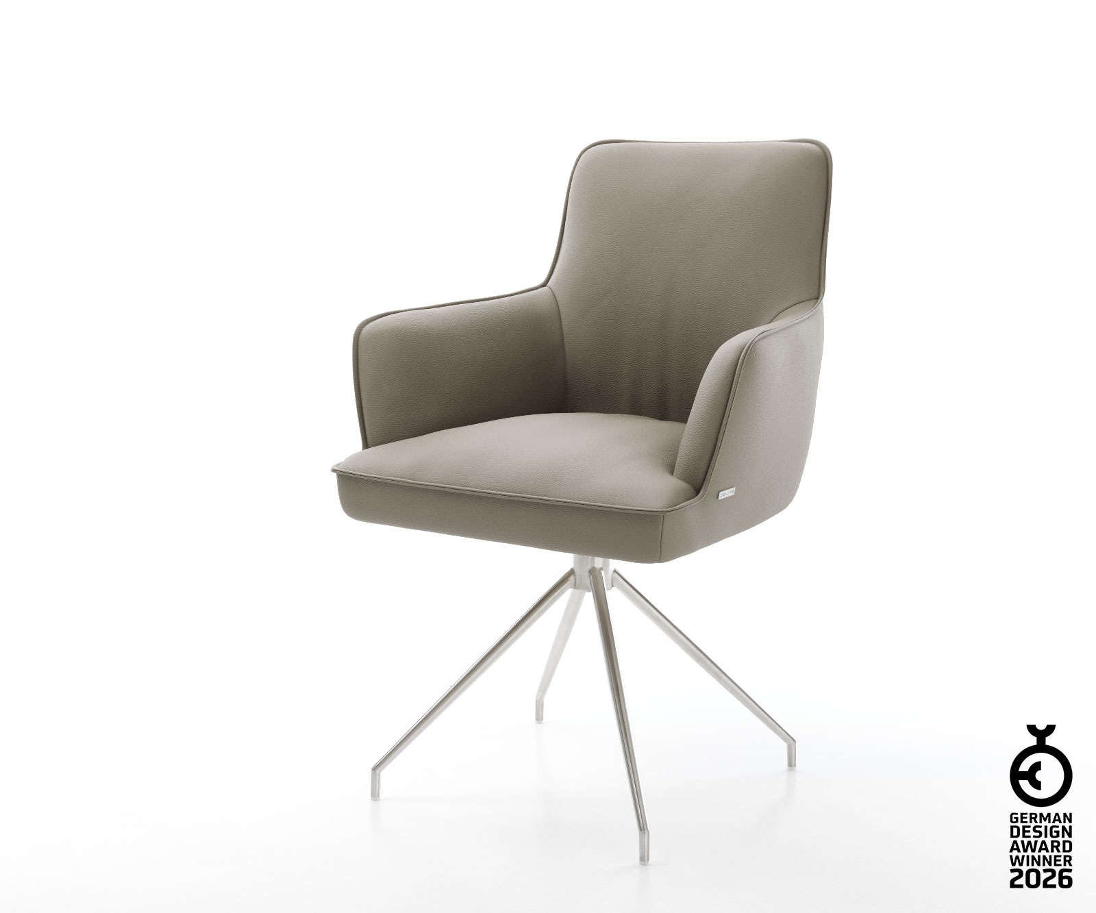 Drehstuhl Heira-Flex mit Armlehnen Echt-Leder Schlamm Kreuzgestell konisch Edelstahl 180° drehbar Taschenfederkern