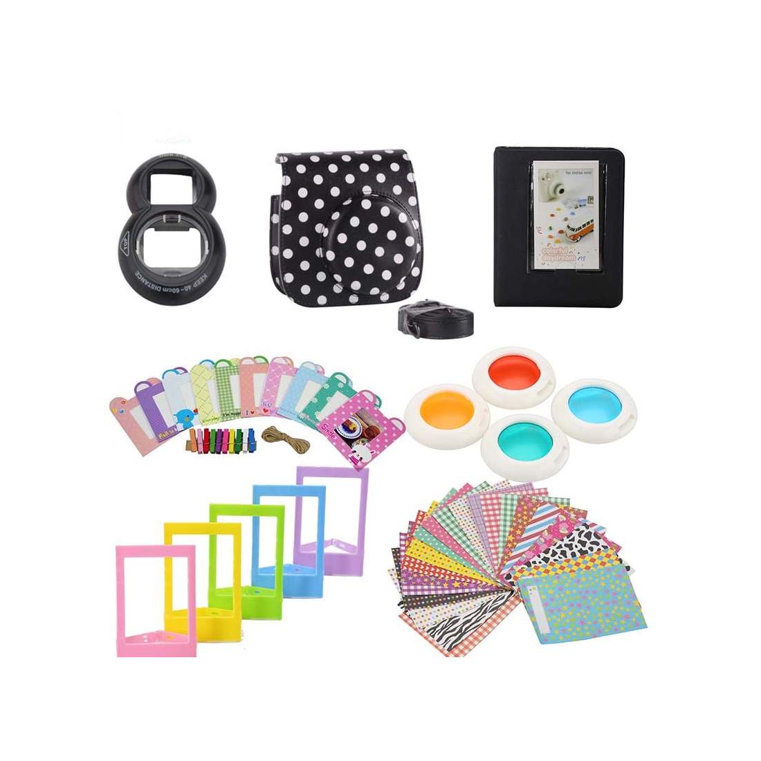Tilbehørssett til Fujifilm Instax Mini 8 / 9 - Prikkete Svart