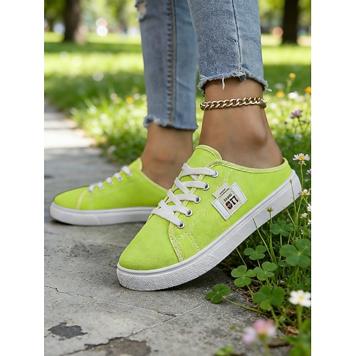 Sneakers slip-on da donna in tela verde con lacci – comode scarpe da ginnastica senza schienale, ideali per passeggiate, shopping, corse a scuola e giornate estive informali