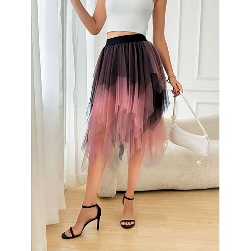 gonna da donna altalena maxi gonne a vita alta tulle a strati tinta unita strada quotidiano autunnoamp;inverno organza elegante moda rosa scuro nero bianco rosa