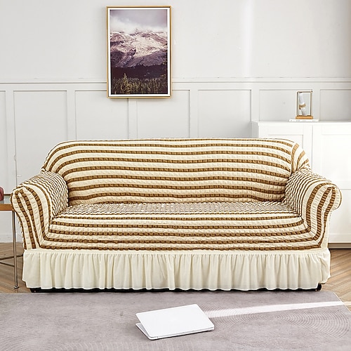 Copridivano in tulle con gonna a bolle, copridivano completamente elastico, copridivano antiscivolo e antipolvere, copridivano estensibile per mobili da soggiorno