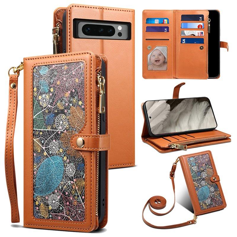 telefono Custodia Per Google Pixel 8 Pro Pixel 9 Pixel 9a Custodia Portafoglio Cerniera con Cordino Cavalletto TPU Pelle PU