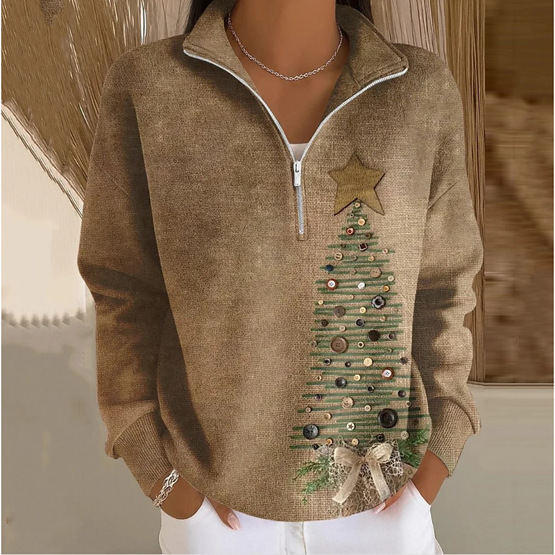 Christmas Women's Christmas Tree SnowflakePullover Sweatshirt Graphic Casual Long Sleeve Half Zip Regular Tops Dailywear Casual Sports White Light Green Brown Light Grey Beige Winter