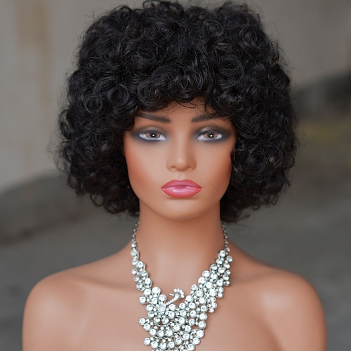 maschinell hergestellte kurze Perücke, Pixie-Lockenperücke aus Echthaar, 1b#/4#/99#/350#/p4/30#/p4/350#, mehrere Farben für schwarze Frauen