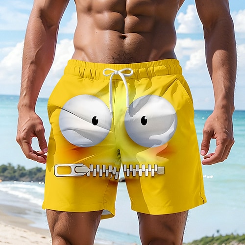 Per uomo Illusione ottica Fantasia Cartone 3D Espressione del viso Costumi da bagno Pantaloncini da mare Pantaloncini da Surf Misura del girovita medio Hawaiano Divertente Vacanza al Mare Tasche