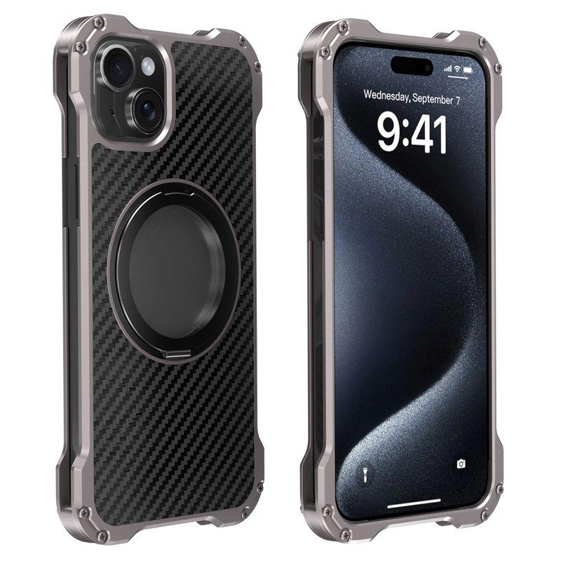 R-JUST RJ-51 Mobilskal till iPhone 15 Aluminium Legering Rotbart Ställ Svart