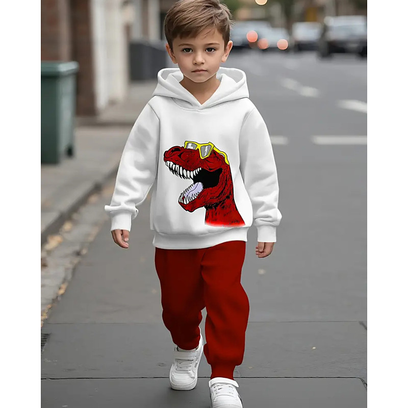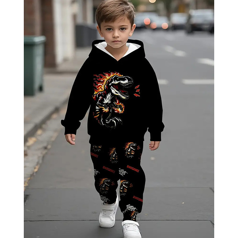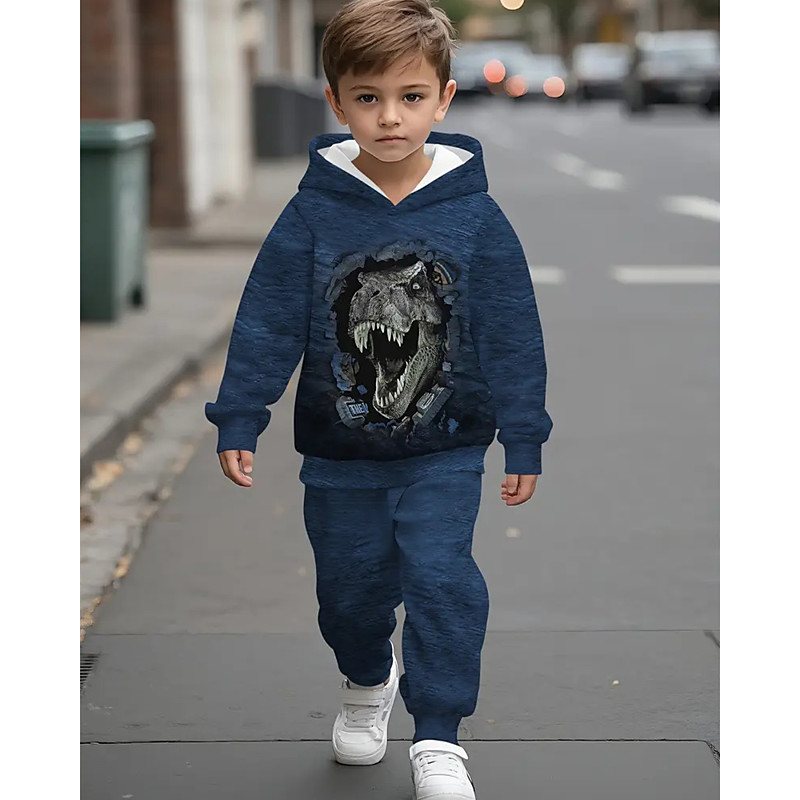 Boys 3D Graphic Dinosaur Hoodie Sweatpants Set Sports Suit Tracksuits Long Sleeve Spring Fall Daily Basic Casual Kids 4-12 Years Hooded Outdoor Vacation Sports Tailored Fit