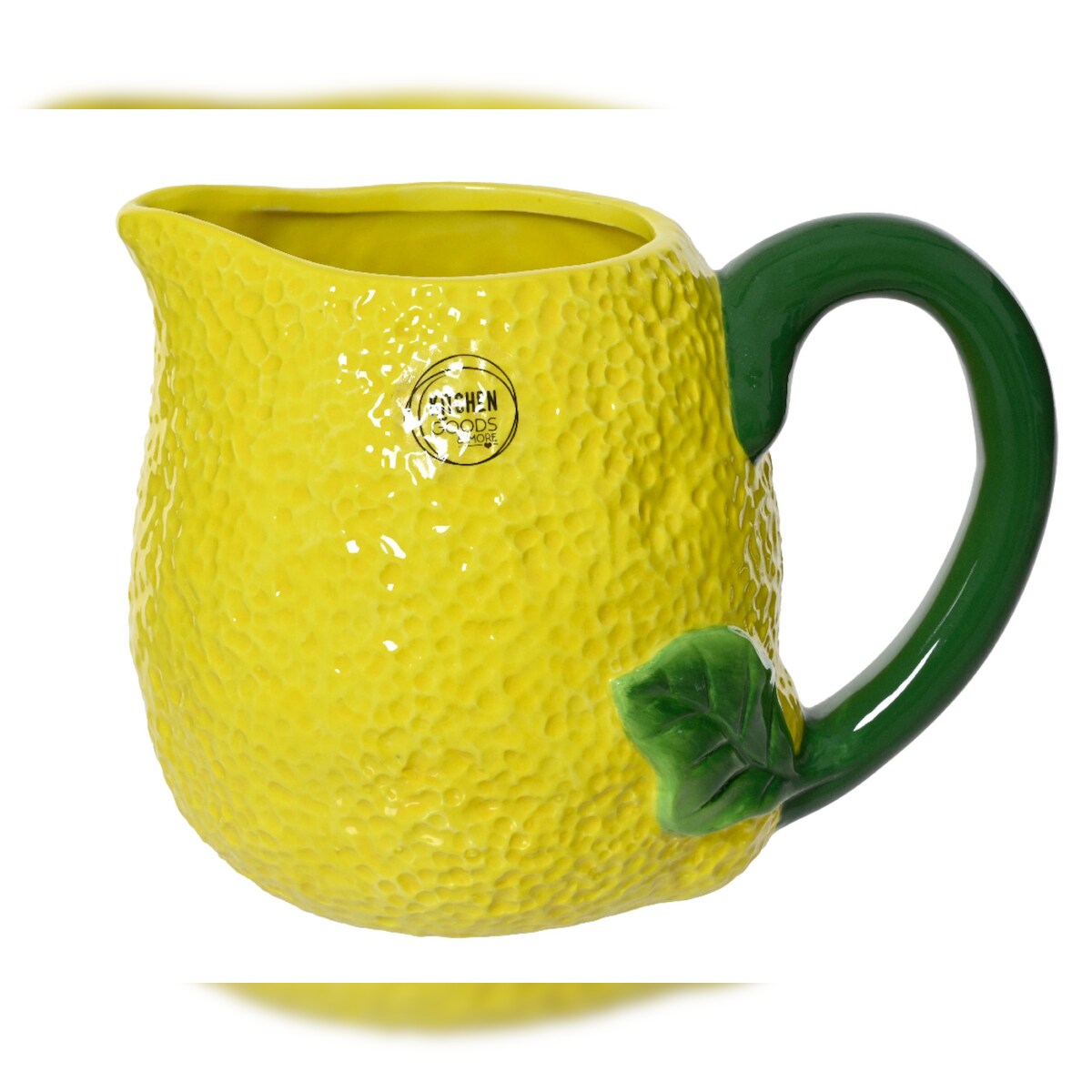 Decoris Kanne 15cm Keramik in Zitronen Form - Karaffe Krug Trinkgeschirr Servierkanne Wasserkanne Saftkanne Limonadenkrug Dekokrug Früchte Geschirr Gelb Grün