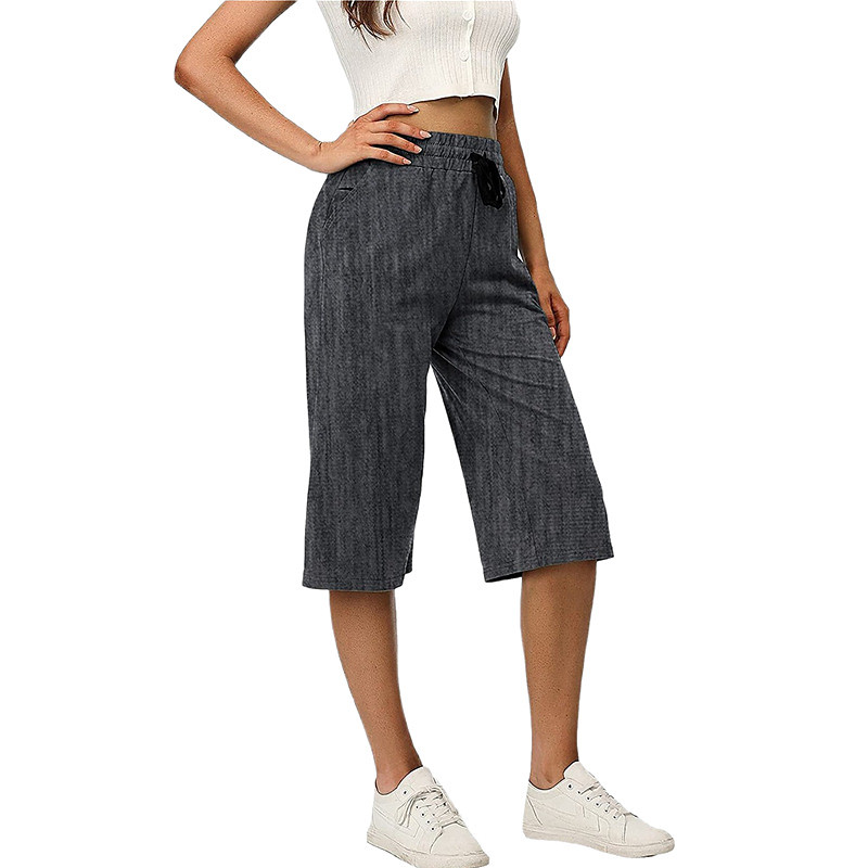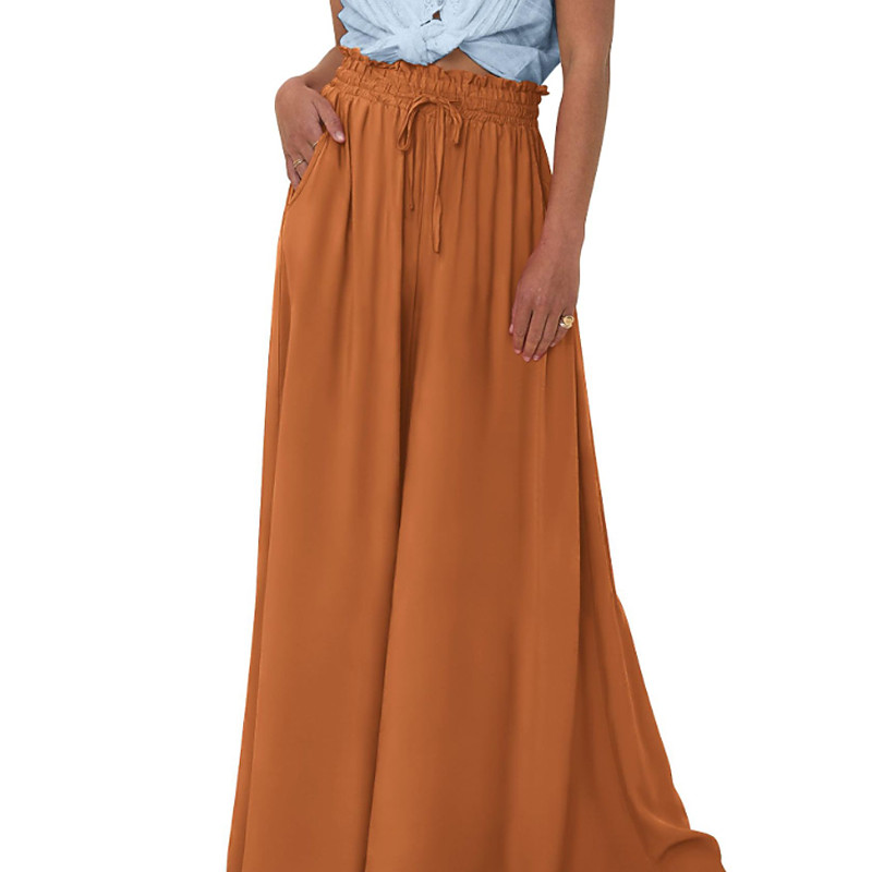 Women's Culottes Wide Leg Slacks Pants Trousers Streetwear Casual Full Length Natural Plain Pocket Elastic Waist Comfy Outdoor Comfortable Vacation Street Apricot Light Sky Blue Black Army Green