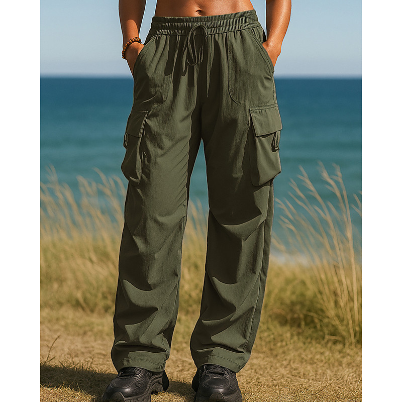 Women's Wide Leg Chinos Fashion Streetwear Calf-Length High Waist Plain Pocket Elastic Waistband Comfy Soft Comfortable Micro-elastic Outdoor Street Navy-blue Army Green Black Blue Summer Spring