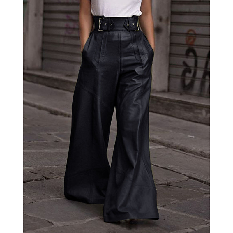 Women's Culottes Wide Leg Chinos Leather Pants Vacation Vintage Streetwear Full Length Medium Waist Plain Zipper Pocket Comfortable Micro-elastic Outdoor Vacation Daily Black Army Green Fall Winter