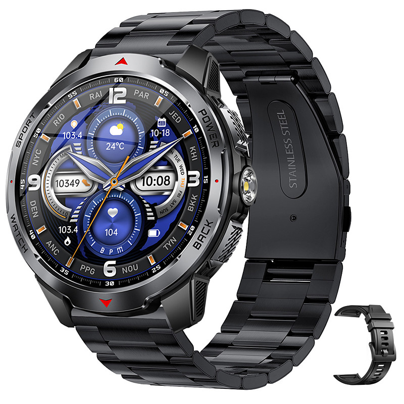 LED Flashlight Smart Watch Men HT28 Outdoor Sports Laser Light Bluetooth Talking Compass Smart Watch with 450mah Large Battery