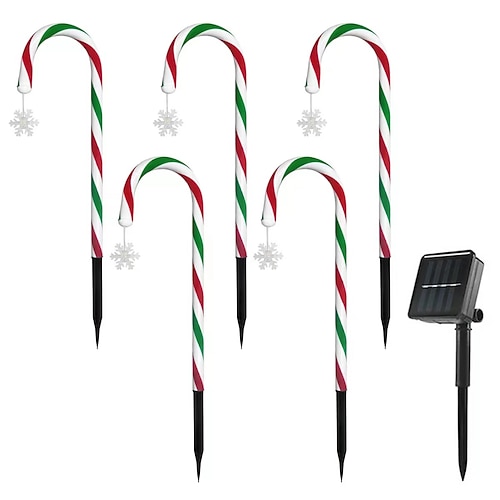 Luci solari a forma di stella di Natale 5 in 1, fiocco di neve, bastoncino di zucchero alla menta piperita - luci decorative per vialetti esterni per cortile e giardino