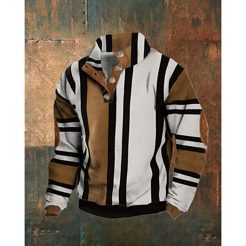 Men's Graphic Color Block Sweatshirt Fashion Streetwear Casual Stand Collar Going out Light Brown Brown Rainbow Buttons Print Spring Fall Designer S M L XL 2XL 3XL