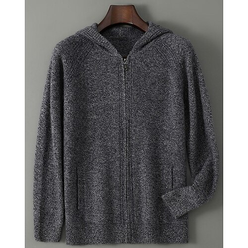 maglione cardigan da uomo in pura lana e cashmere di alta qualità, classico, con cappuccio, in maglia, con cerniera, tasca, morbido, caldo e traspirante