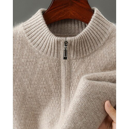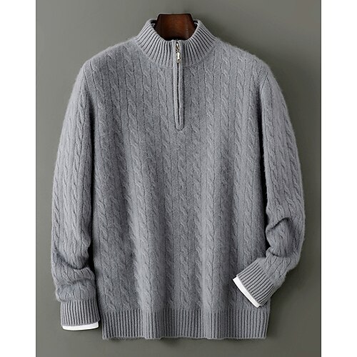 maglione da uomo in pura lana e cashmere di alta qualità, con cerniera a un quarto, classico pullover lavorato a maglia, morbido, caldo e traspirante
