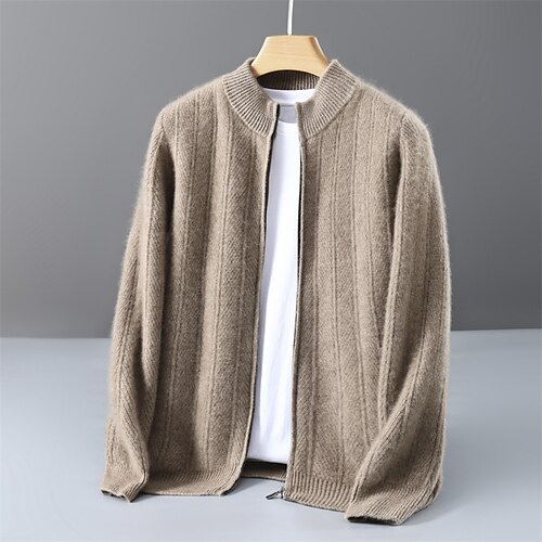 maglione cardigan da uomo in pura lana e cashmere di alta qualità, classico, lavorato a maglia, con cerniera, morbido, caldo e traspirante