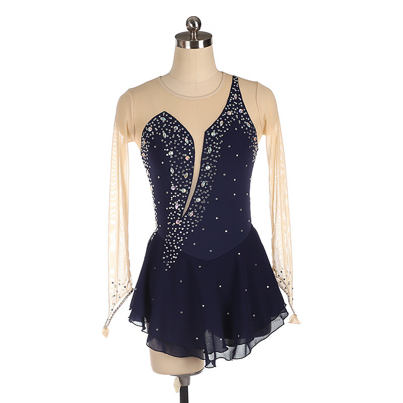Figure Skating Dress Women's Girls' Ice Skating Dress Light Yellow Yan pink Black Patchwork Mesh Spandex High Elasticity Training Competition Skating Wear Handmade Crystal / Rhinestone Long Sleeve