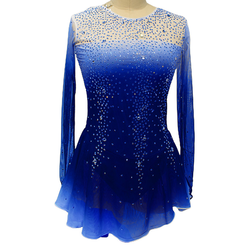 Figure Skating Dress Women's Girls' Ice Skating Dress Pink Purple Patchwork Mesh High Elasticity Training Competition Skating Wear Classic Crystal / Rhinestone Long Sleeve Ice Skating Figure Skating
