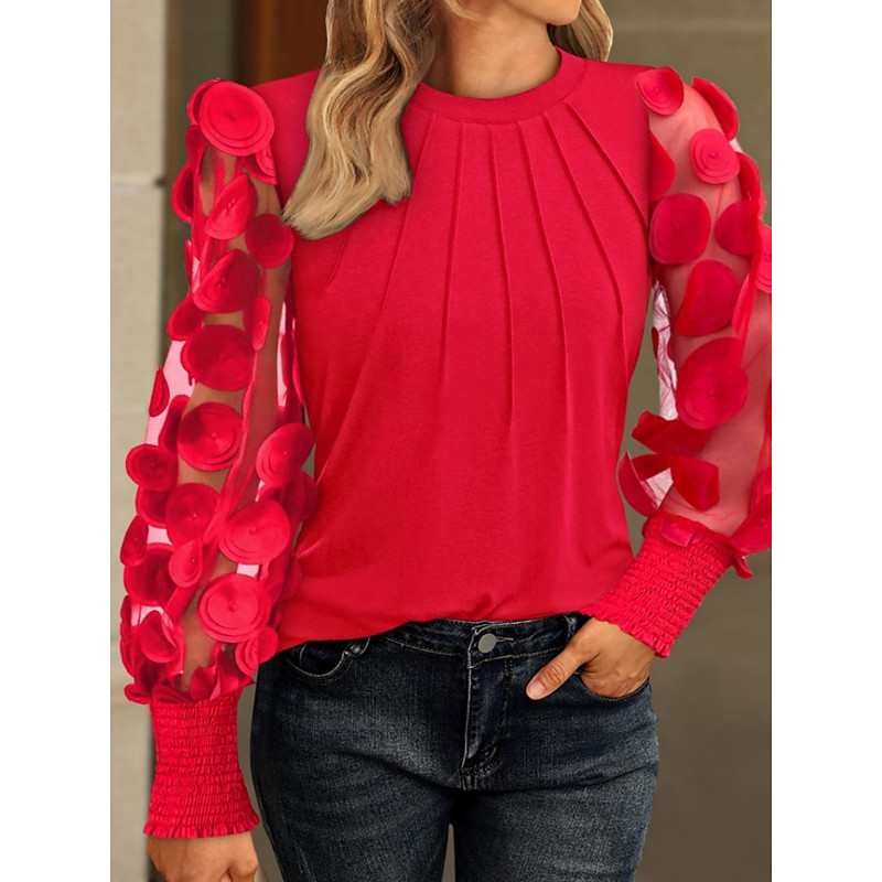 Women's Blouse Solid Color Stylish Casual Long Sleeve Crew Neck Regular Tops Daily Patchwork Mesh Blue Black and gray Black Pink Red Spring Fall Winter