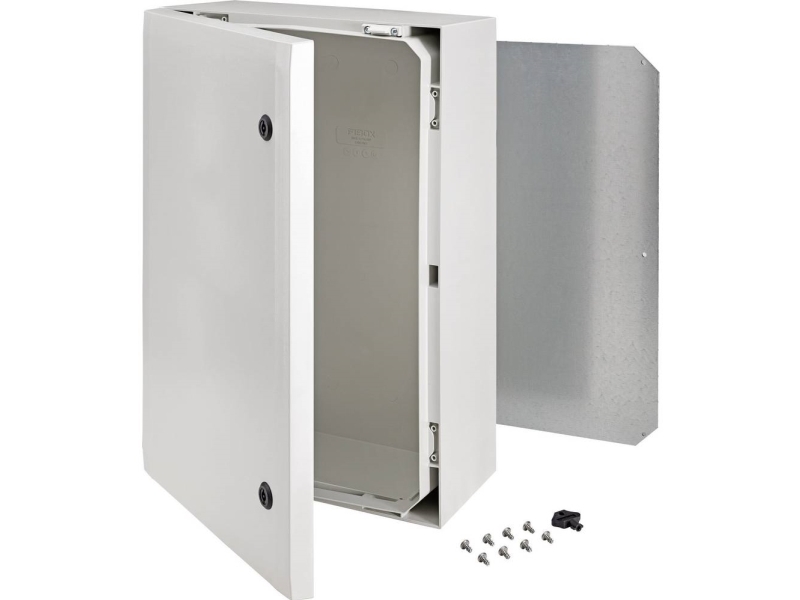 FIBOX Seinäkaappi ARCA, polykarbonaatti, harmaa ovi, 2 lukitusta, sarana pitkällä sivulla, KxSxK, 600x400x210mm, asennuslevyllä varustettuna