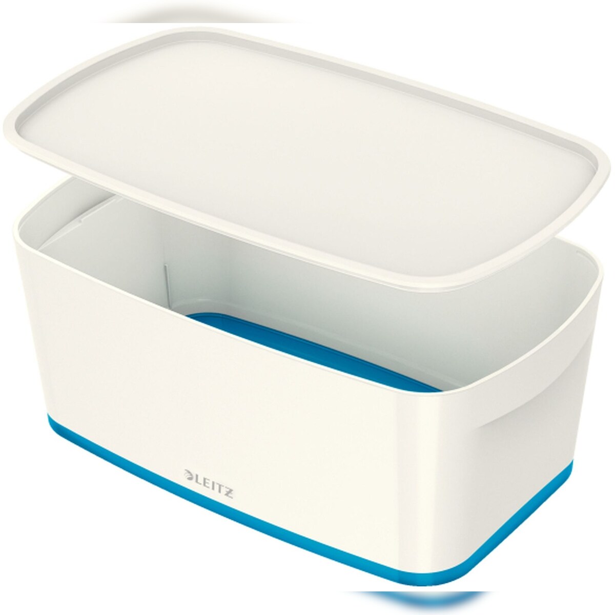 LEITZ Aufbewahrungsbox MyBox Klein A5 mit Deckel ABS weiß/blau Packung mit 4 Stück