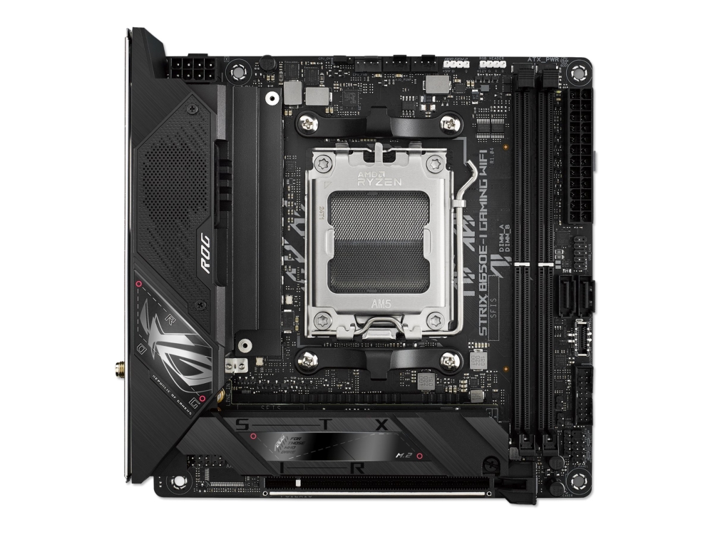 ASUS ROG Strix B650E-I Gaming WiFi - Bundkort - mini ITX - Socket AM5 - AMD B650 Chipset - USB-C 3.2 Gen 2x2, USB-C 3.2 Gen2, USB 3.2 Gen 2, USB 3.2 Gen 1 - 2.5 Gigabit LAN, Wi-Fi 6E - onboard grafik (CPU påkrævet) - HD Audio (8-kanaler)