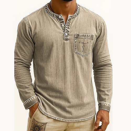 Herren Henley Hemd T-Shirt Langarmshirt Langarm Henley Herbst Winter Flagge Retro Mode Designer Mode Jahrgang Urlaub Straße Ausgehen Dunkel Braun Marineblau Schwarz Top T-Shirt für Herren