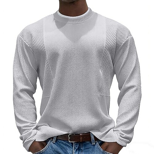 Herren T-Shirt Langarmshirt Langarm Rundhalsausschnitt Rundhals Frühling Herbst Ganzjahres Einfach Mode Designer Lässig Mode Lässig Urlaub Straße Schwarz Weiß Grau Top T-Shirt für Herren