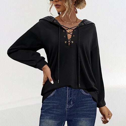 Per donna Felpa con cappuccio Semplice Sport Moda Casual Manica Lunga Con Cappuccio Top Regolari Streetwear Abbigliamento Quotidiano Coulisse Nero Autunno Inverno