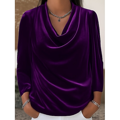 camicia da donna in velluto natalizio vintage per feste festività semi formale abbigliamento formale nero vino blu viola verde autunno inverno