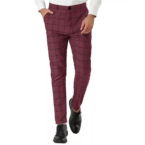 Per uomo Pantaloni Pantaloni Eleganti Chinos Tasca Bottoni Plaid Comodità Formale Feste Lavoro Moda Stile Classico Nero Vino Micro-elastico