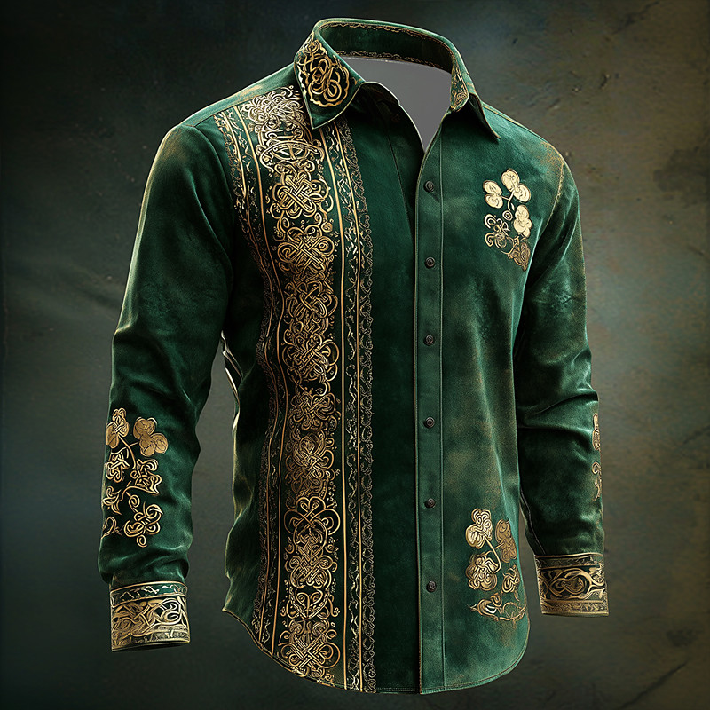 St. Patrick's Day Men's Four Leaf Clover Shamrock Celtic Art Shirt Button Up Shirt Long Sleeve Vintage Retro Holiday Spring Fall Turndown 3D Print Linen Like Shirt Green 1# Green