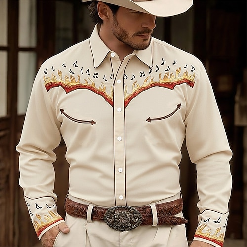 Per uomo Fiamma Note Musicali Camicia Camicia Western Camicia da cowboy Manica Lunga Vintage Retrò Casuale All'aperto Abbigliamento da lavoro Primavera Autunno Collo ripiegato Stampa 3D Camicia tipo