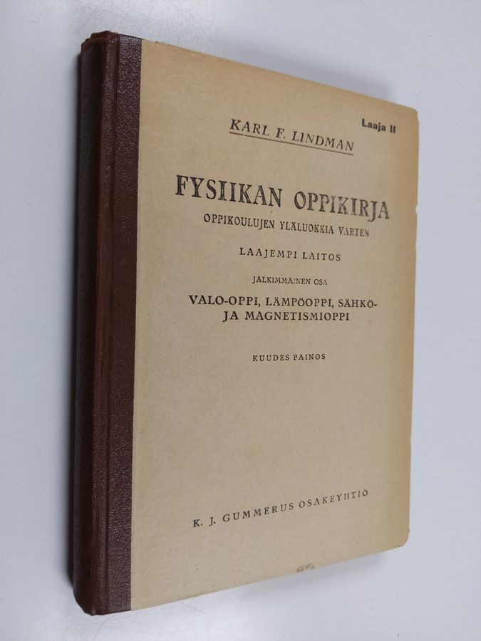 Karl F. Lindman : Fysiikan oppikirja oppikoulujen yläluokkia varten :; suppeampi laitos, 2 - Valo-oppi, lämpöoppi, sähkö- ja magnetismioppi