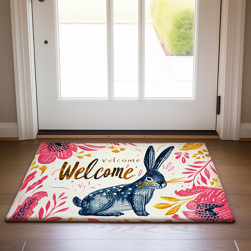 Welcome Rabbits Doormat Floor Mats Washable Rugs Kitchen Mat Non-Slip Oil Proof Rug Indoor Outdoor Mat Bedroom Decor Bathroom Mat Entrance Rug