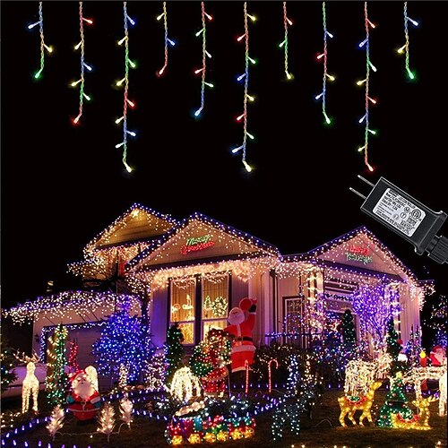 Weihnachts-LED-Eiszapfenlichter 10 m 5 m hängende Vorhang Feenlichter 216 LEDs 500 LEDs flexible Urlaubs-Lichterkette für Innen-Außen-Weihnachtsfeier Höhlen Flure Vorhangbeleuchtung