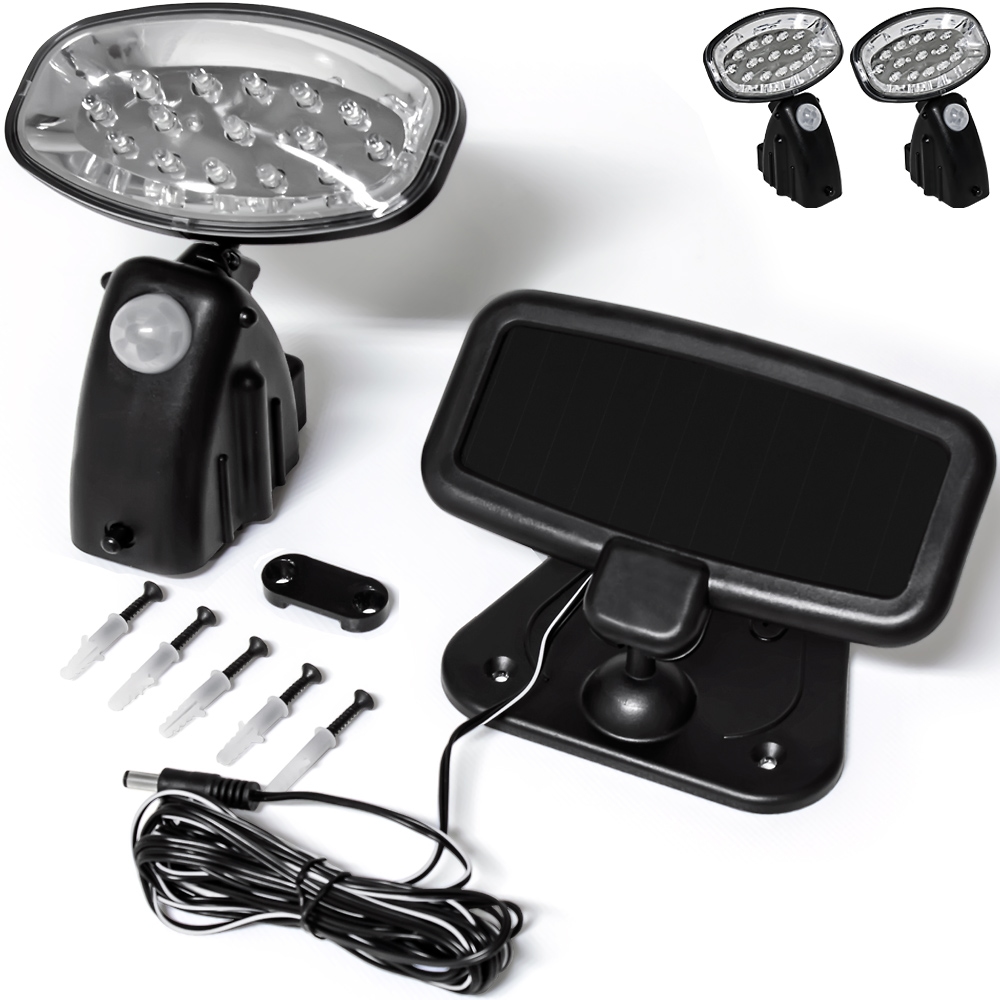 DEUBA® LED Solarlampe mit Bewegungsmelder 2er Set Strahler Akku Panel Außenlampe Außenleuchte Wand Außen Garten