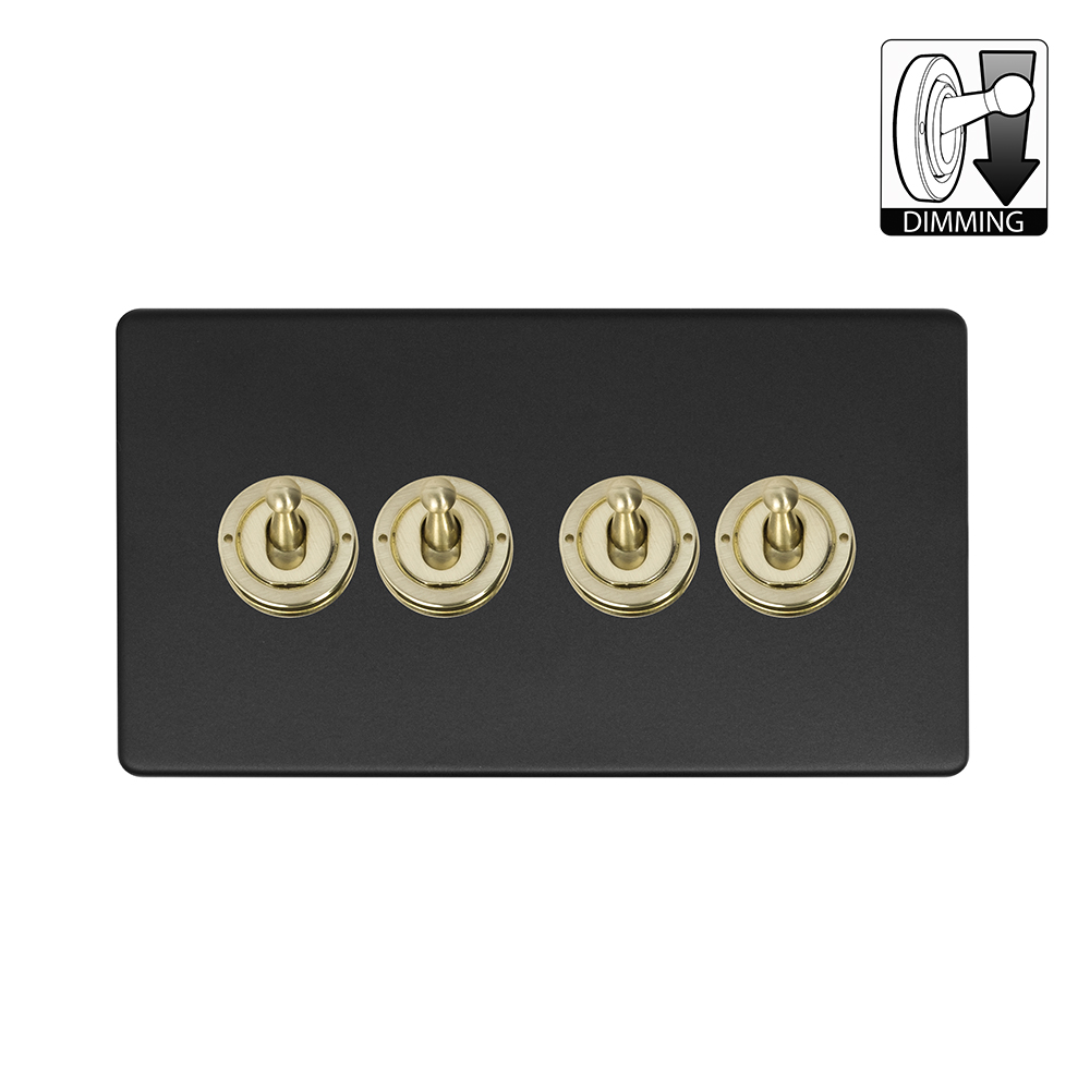 Soho Lighting Lighting Matt Black & Brushed Brass 4 Gang Dimming Toggle Switch
