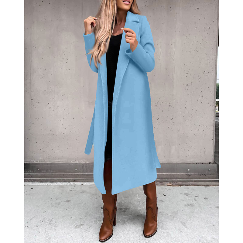 Women's Parka Comfortable Pocket Fashion Modern Plain Street Holiday Open Front Long Turndown Regular Fit Long Sleeve Outerwear Black Sky Blue Khaki Fall Winter