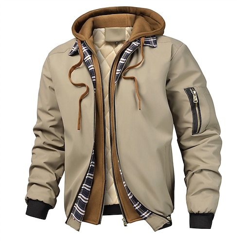 Herren Freizeitjacke Kapuzenjacke Parka Urlaub Täglich Warm Tasche Herbst Winter Einfach Mode Klassisch Mit Kapuze Regulär Schwarz Marineblau Khaki Jacken