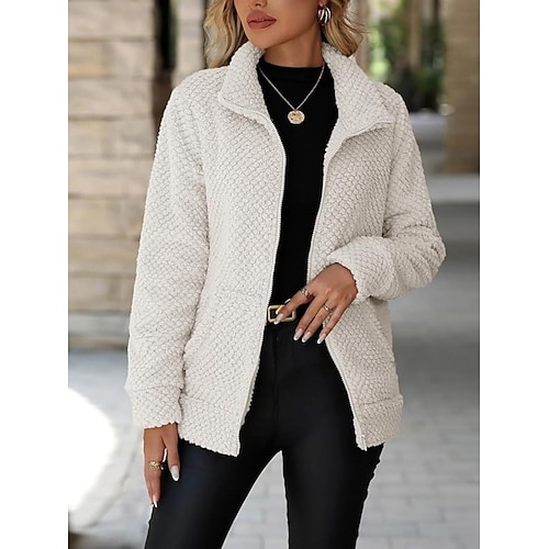 Damen Parka Bequem Atmungsaktiv Reißverschluss Tasche Lässig Einfach Urlaub Straße Lässig Alltagskleidung Reisverschluss Regulär Umlegekragen Normale Passform Langarm Oberbekleidung Weiß Rote Khaki