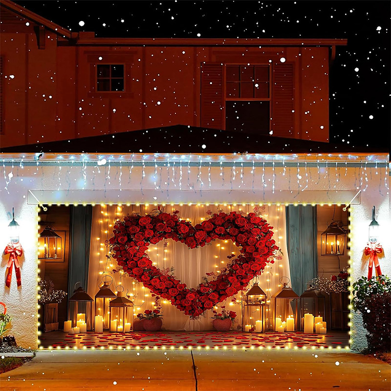 Valentine's Day Garage Door Cover Large Hanging Backdrop Rose Vintage 3D Party Outdoor Shooting Backgrounds Front Door Home Decor