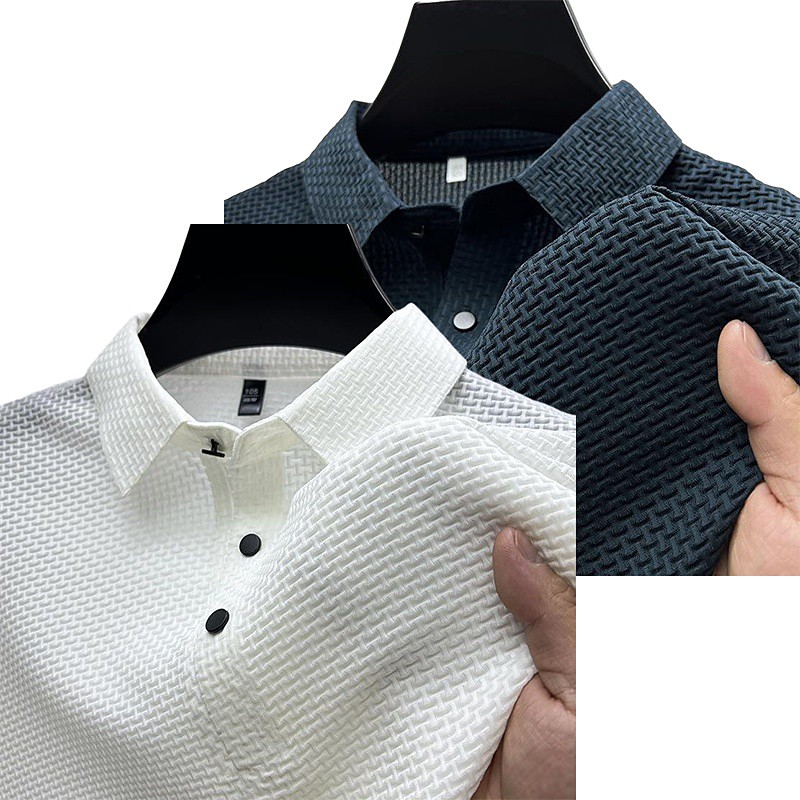 Men's Golf Shirt Golf Polos Shirts Work Casual Lapel Short Sleeve Basic Modern Plain 2 Piece Jacquard Summer Regular Fit Wine Black White Dark Red Pink sky blue Golf Shirt