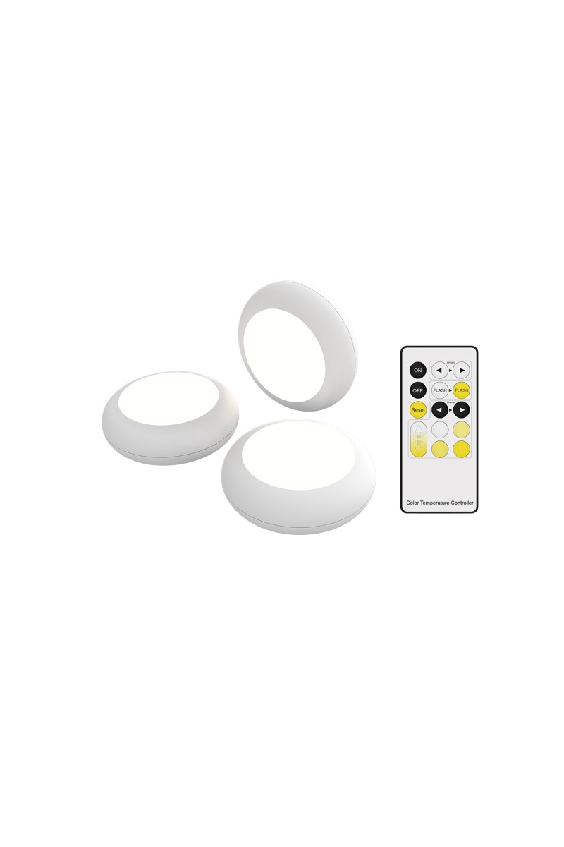 Calex Spot on Pucklights - set de 3 pucklights à piles avec télécommande - Ø 7,8 x 3,8 cm - blanc