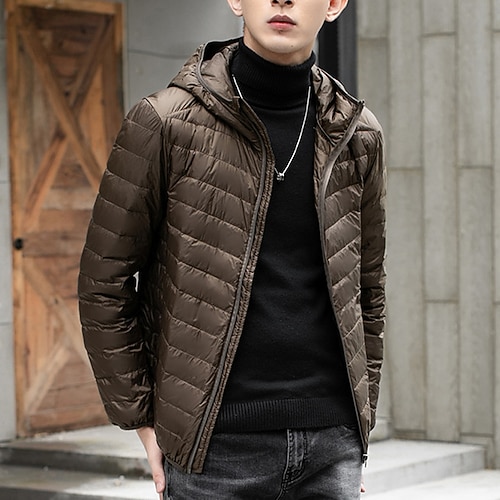 Per uomo Cappotto Invernale Giacca imbottita Giacca Imbottita Tasca 50% piumino d'anatra bianca Vacanza Abbigliamento quotidiano Data Regolare Moda Casual Confortevole Calore Termico Inverno Colore