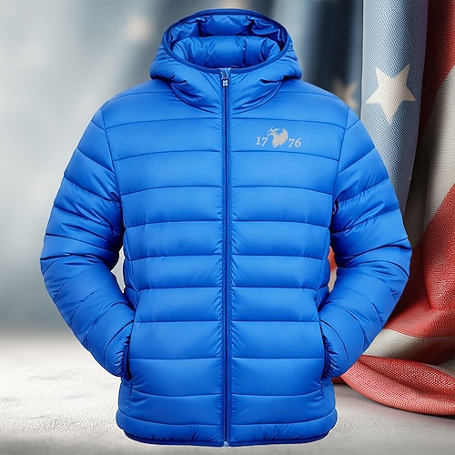 Per uomo Grafico Aquila 1776 Cappotto Invernale Giacca Piumino Giacca imbottita Calore Termico Impermeabile alla pioggia Leggero Casual All'aperto Quotidiano Giacca imbottita trapuntata con cappuccio